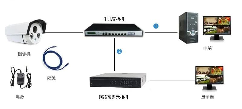 2、點對點傳輸如果多個攝像頭比較集中,可以把攝像頭連接交換機