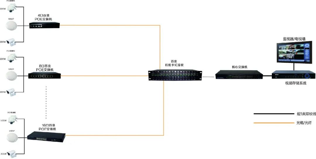 二:POE供電架構:網絡攝像機+POE交換機